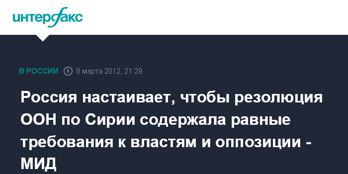 Россия настаивает, чтобы резолюция ООН по Сирии содержала равные требования к властям и оппозиции - МИД