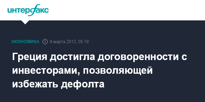Греция достигла договоренности с инвесторами, позволяющей избежать дефолта