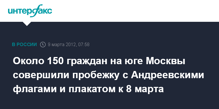 Около 150 граждан на юге Москвы совершили пробежку с Андреевскими флагами и плакатом к 8 марта