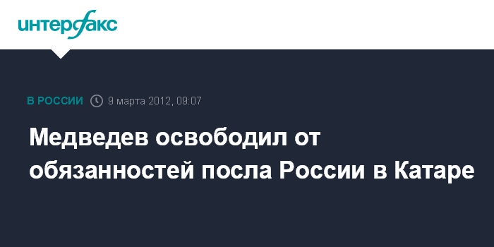 Медведев освободил от обязанностей посла России в Катаре