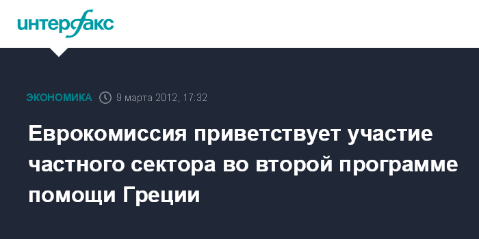 Еврокомиссия приветствует участие частного сектора во второй программе помощи Греции