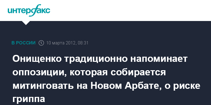 Онищенко традиционно напоминает оппозиции, которая собирается митинговать на Новом Арбате, о риске гриппа