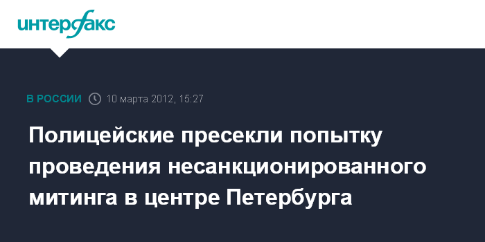 Санкт-Петербург.10 марта. INTERFAX.RU - Около 40 человек были задержаны в субботу днем за попытку проведения несанкционированной акции в центре северной столицы, сообщили "Интерфаксу" в пресс-службе Главного управления МВД по Петербургу и Ленинградской области.