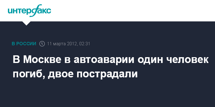 В Москве в автоаварии один человек погиб, двое пострадали
