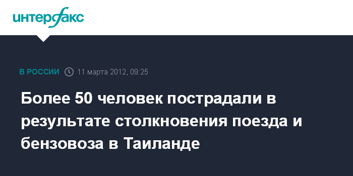 Бангкок. 11 марта. INTERFAX.RU - Более 50 человек получили ранения в результате столкновения на юге Таиланда пассажирского поезда с бензовозом, передает в воскресенье агентство EFE.