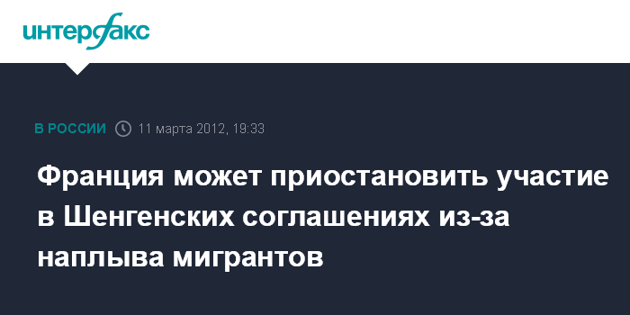 "Франция приостановит участие в Шенгенских соглашениях, если не будет прогресса в укреплении границ Европейского союза против иммигрантов", - сказал Саркози в воскресенье на встрече со своими сторонниками в пригороде Парижа Вильпенте.