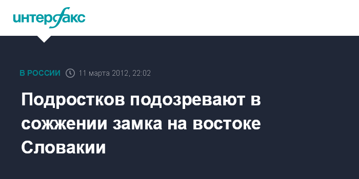 Братислава. 11 марта. INTERFAX.RU - Власти Словакии подозревают двух подростков в том, что они случайно сожгли старинный готический замок на востоке страны, сообщила в воскресенье местная полиция.