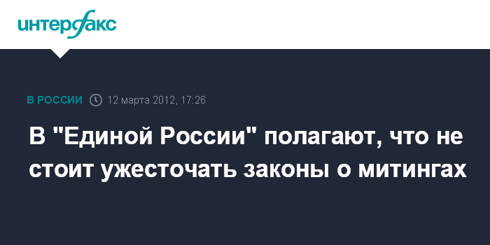 Москва. 12 марта. INTERFAX.RU - В "Единой России" считают, что нет необходимости ужесточать федеральное законодательство о проведении массовых акций.