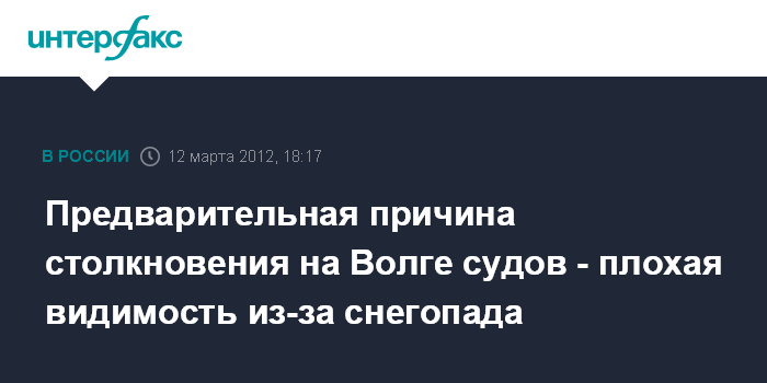 Москва. 12 марта. INTERFAX.RU - Причиной столкновения в Нижегородской области двух судов на воздушной подушке, в результате которого пострадали шесть человек, могло быть ограничение видимости в условиях снегопада, сообщили в СК РФ.