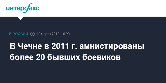 В Чечне в 2011 г. амнистированы более 20 бывших боевиков