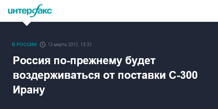 Москва. 13 марта. INTERFAX.RU - Россия не будет поставлять Ирану зенитные ракетные системы С-300, заявил замминистра обороны РФ Анатолий Антонов журналистам во вторник.