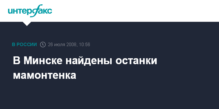 Москва. 26 июля. INTERFAX.RU - Останки мамонтенка, которые были обнаружены на одной из стройплощадок в Минске, ученые относят к 40-26 тысячелетию до н.э., сообщил агентству "Интерфакс-Запад" заведующий отделом археологии института истории Национальной академии наук Белоруссии Александр Медведев.
