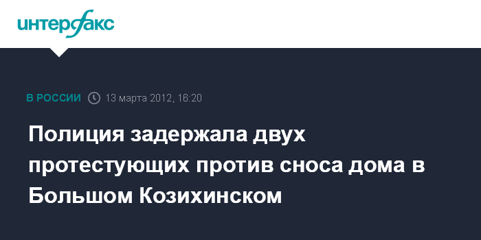 Москва. 13 марта. INTERFAX.RU - Два человека задержаны за попытку блокирования работ по сносу дома в Большом Козихинском переулке в центре Москвы, заявили "Интерфаксу" в пресс-службе столичного ГУ МВД России.