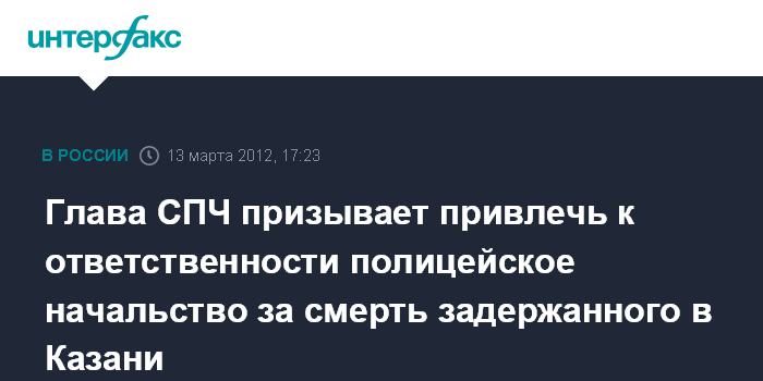 Глава СПЧ призывает привлечь к ответственности полицейское начальство за смерть задержанного в Казани