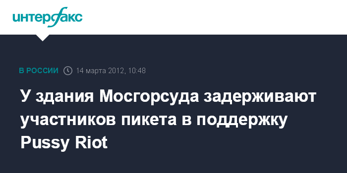 Москва.14 марта. INTERFAX.RU - Трое участников акции протеста против ареста девушек из группы Pussy Riot задержаны в среду у здания Мосгорсуда.
