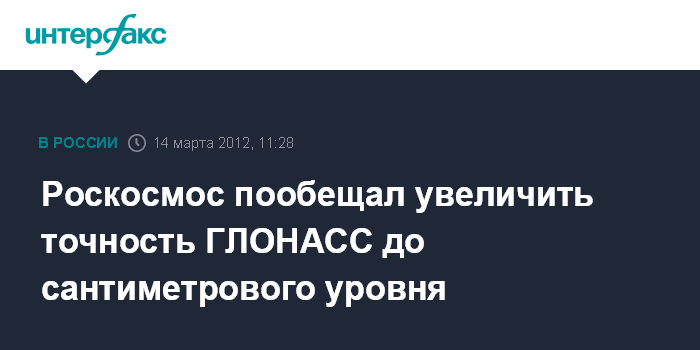 Москва. 14 марта. INTERFAX.RU - Федеральной целевой программой развития ГЛОНАСС на 2011-2020 гг. планируется повысить точность определения координат с помощью российской навигационной спутниковой системы с метров до сантиметров.