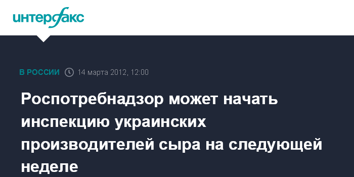 Ранее его ведомство проинформировало Украину о том, что специалисты Роспотребнадзора готовы проверить украинских сыроделов. Во вторник в Киеве глава государственной ветеринарной и фитосанитарной службы Украины Иван Бисюк сказал, что проверки украинских сыроделов Роспотребнадзором начнутся 19 марта.