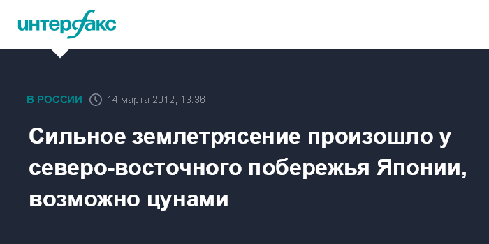 Токио. 14 марта. INTERFAX.RU - Землетрясение магнитудой 6.8 произошло в среду у северо-восточного побережья Японии, сообщило Японское метеорологическое агентство.