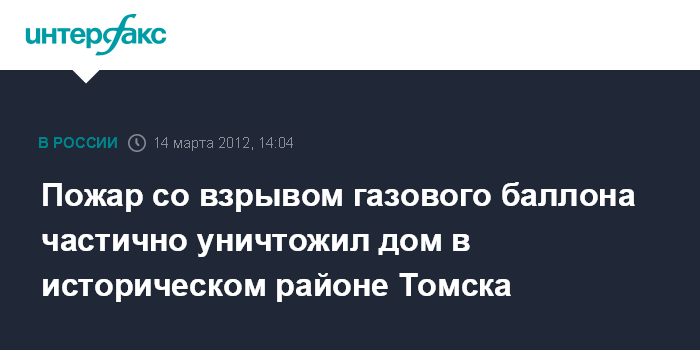 Пожар со взрывом газового баллона частично уничтожил дом в историческом районе Томска