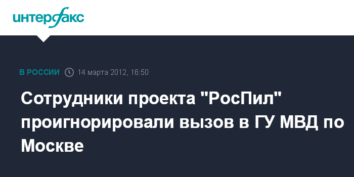 Сотрудники проекта "РосПил" проигнорировали вызов в ГУ МВД по Москве