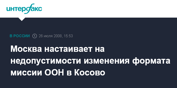 Москва настаивает на недопустимости изменения формата миссии ООН в Косово