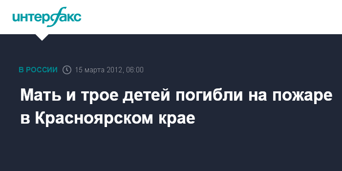 Красноярск. 15 марта. ИНТЕРФАКС-СИБИРЬ - Четыре человека, в том числе трое детей, погибли в результате пожара в четверг утром в поселке Каратузское в Красноярском крае, сообщает ГУ МЧС по региону.