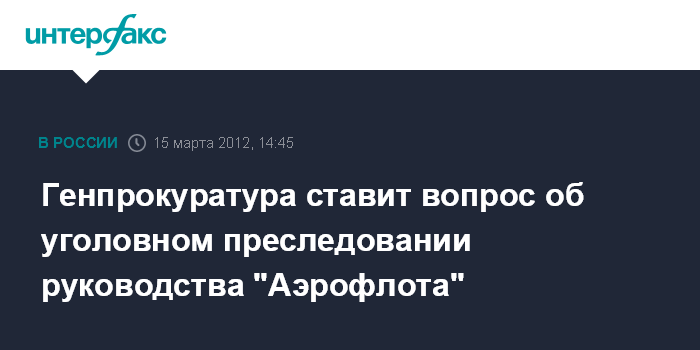 Генпрокуратура ставит вопрос об уголовном преследовании руководства "Аэрофлота"