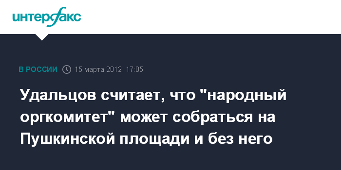 Москва. 15 марта. INTERFAX.RU - Сбор участников так называемого "народного оргкомитета", запланированный на субботу на Пушкинской площади, может состояться независимо от ареста лидера "Левого фронта" Сергея Удальцова.
