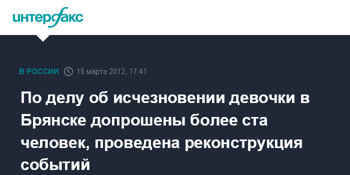 По делу об исчезновении девочки в Брянске допрошены более ста человек, проведена реконструкция событий