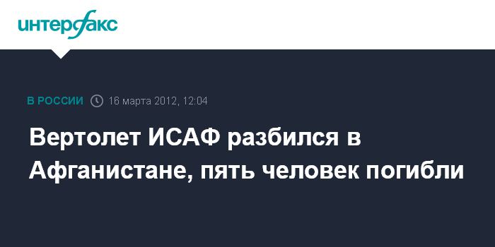 Вертолет ИСАФ разбился в Афганистане, пять человек погибли