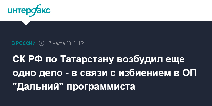 СК РФ по Татарстану возбудил еще одно дело - в связи с избиением в ОП "Дальний" программиста