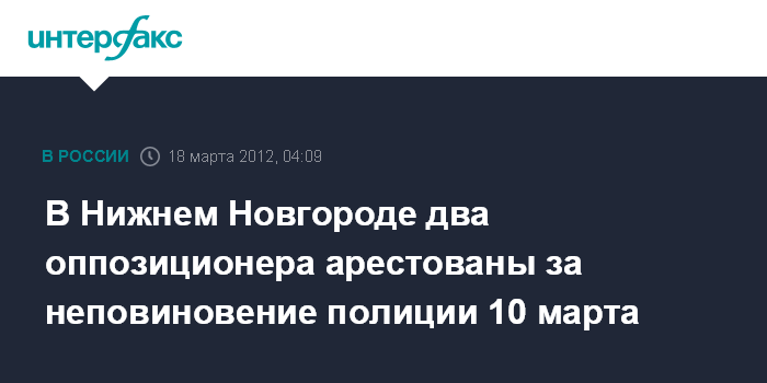 В Нижнем Новгороде два оппозиционера арестованы за неповиновение полиции 10 марта