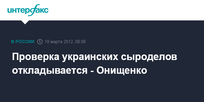 Ранее Роспотребнадзор заявил, что может на следующей неделе (19-25 марта) приступить к инспекции украинских заводов, которые намерены поставлять сыр на рынок РФ. Однако позже Г.Онищенко подверг критике решение Украины провести независимую экспертизу продукции своих сырзаводов.