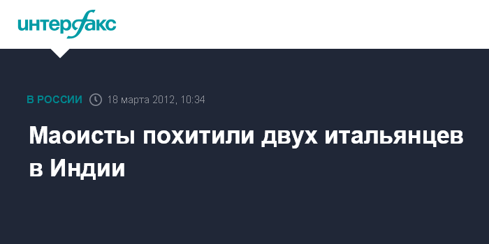 Дели. 18 марта. INTERFAX.RU - Повстанческое движение маоистов похитило в Индии двух итальянских туристов и выдвинуло политические требования к государству для их освобождения, сообщает в воскресенье индийский телеканал Эн-Ди-Ти-Ви. Инцидент произошел в восточном штате Орисса - одном из регионов страны, где маоисты на протяжении десятилетий ведут борьбу за свержение власти.