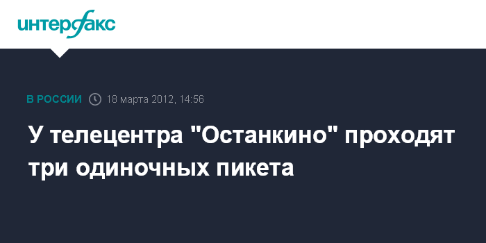 Москва. 18 марта. INTERFAX.RU - Три одиночных пикета проходят у здания телецентра Останкино в знак несогласия с содержанием показанного на телеканале НТВ фильма об оппозиции "Анатомия протеста". Как передает корреспондент "Интерфакса", к месту проведения пикетов стягиваются люди с белыми лентами и журналисты. Сотрудники полиции, дежурящие неподалеку, в происходящее не вмешиваются. У выхода из станции монорельса "Телецентр" стоят четыре полицейских автобуса и сотрудники ОМОН.