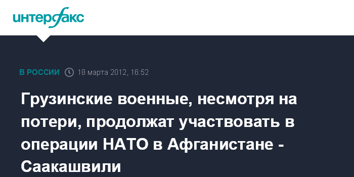 Грузинские военные, несмотря на потери, продолжат участвовать в операции НАТО в Афганистане - Саакашвили