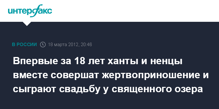 Ханты-Мансийск. 18 марта. INTERFAX.RU - Встреча представителей двух коренных малочисленных народов Севера состоится 22-25 марта на священном озере Нумто (Ханты-Мансийский автономный округ), сообщили агентству "Интерфакс-Урал" в общественной организации "Спасение Югры".