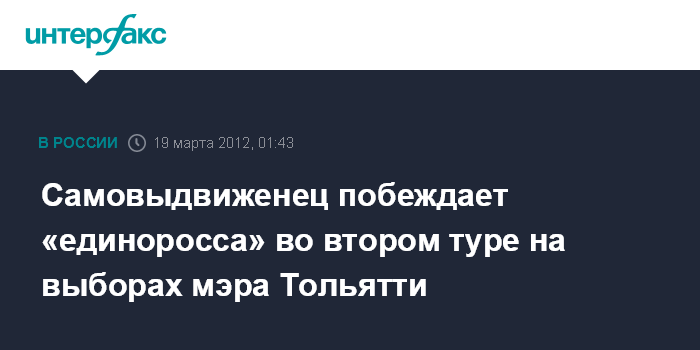 Самовыдвиженец побеждает «единоросса» во втором туре на выборах мэра Тольятти