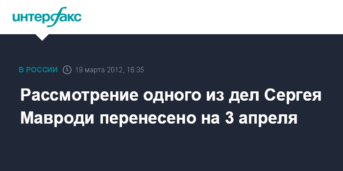 Москва. 19 марта. INTERFAX.RU - Мировой участок Хамовнического суда Москвы перенес рассмотрение административного дела в отношении основателя финансовой пирамиды МММ Сергея Мавроди на 3 апреля.