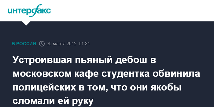 Устроившая пьяный дебош в московском кафе студентка обвинила полицейских в том, что они якобы сломали ей руку