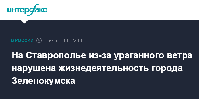 "В Зеленокумске примерно с 18:30 мск в течение получаса выпало около 40 мм осадков. Ливневый дождь с градом сопровождался ураганом, скорость которого доходила до 28 метров в секунду. В результате буйства стихии в Зеленокумске имеются повреждения ЛЭП, повлекшие отключения электроэнергии, сорвана кровля со многих частных жилых домов, повалено большое количество деревьев", - сообщили агентству "Интерфакс-Юг" в воскресенье в пресс-службе Южного регионального центра МЧС РФ.