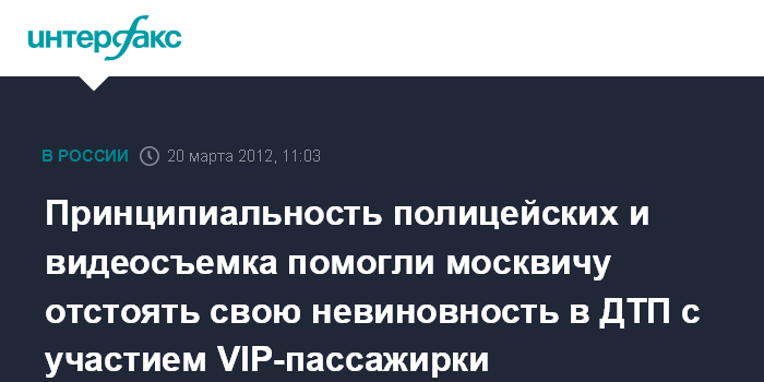 Москва. 20 марта. INTERFAX.RU - Принципиальность столичных автоинспекторов и видеосъемка уличной камеры помогли автомобилисту отстоять свою невиновность в незначительном ДТП в центре Москвы с участием высокомерной VIP-пассажирки.
