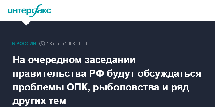 На очередном заседании правительства РФ будут обсуждаться проблемы ОПК, рыболовства и ряд других тем