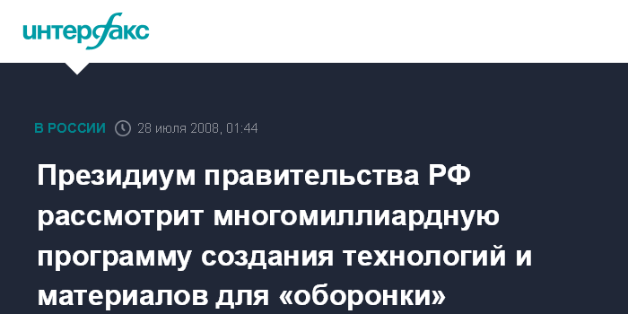 Президиум правительства РФ рассмотрит многомиллиардную программу создания технологий и материалов для «оборонки»
