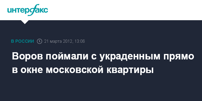 Москва. 21 марта. INTERFAX.RU - Столичные полицейские благодаря бдительной москвичке поймали воров-"домушников" прямо в окне ограбленной квартиры, сообщила в среду "Интерфаксу" официальный представитель УВД Южного округа Москвы Наталья Мальцева.