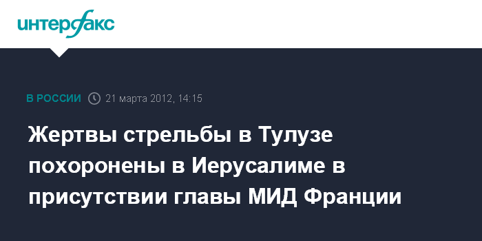 Иерусалим. 21 марта. INTERFAX.RU - Четверо жертв стрельбы у еврейской школы в Тулузе похоронены в среду в Иерусалиме, сообщает интернет-сайт израильской газеты "Гаарец".