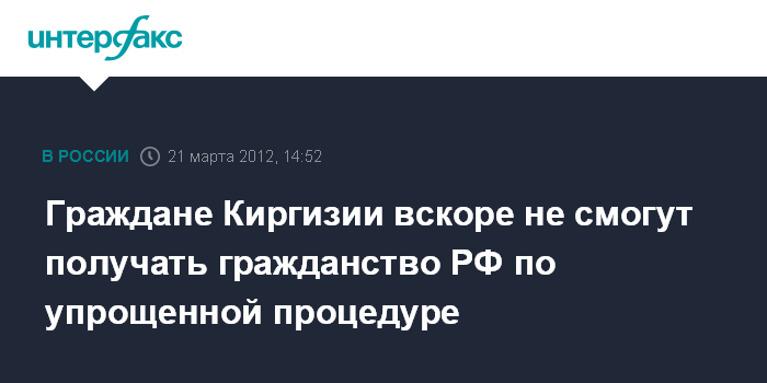 Москва. 21 марта. INTERFAX.RU - Соглашение между Россией и Киргизией об упрощенном получении гражданства РФ будет денонсировано, сообщил глава ФМС Константин Ромодановский.