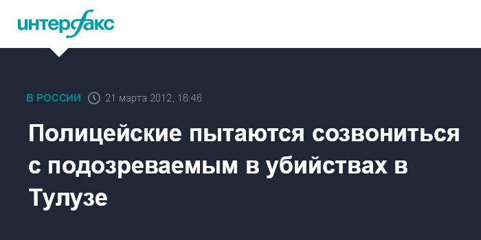Париж. 21 марта. INTERFAX.RU - Бойцы полицейского спецназа восстановили контакт в Тулузе с мужчиной, подозреваемым в совершении убийств на юге Франции, сообщают в среду парижские СМИ.