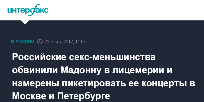 Защитники прав геев и лесбиянок "готовы пикетировать концерты Мадонны 7 августа в Москве и 9 августа в Санкт-Петербурге, чтобы привлечь внимание к общей проблеме лицемерия западных звезд", - сказал активист.