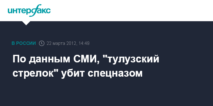 Париж. 22 марта. INTERFAX.RU - "Тулузский стрелок" Мухаммед Мера, убивший семь человек, включая трех детей, убит французскими спецназовцами, сообщили французские СМИ.